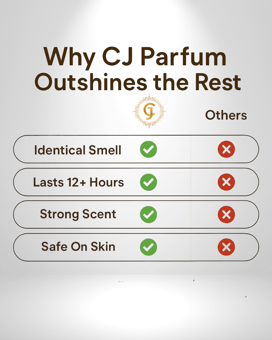 While most high street brands and competitors use just 10–15% fragrance oil, CJ Parfum is crafted with a 25% oil concentration — delivering richer scent profiles and remarkable longevity.